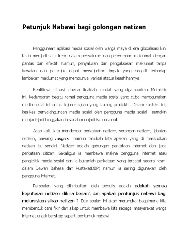 Pentunjuk Nabawi Bagi Golongan Netizen Pdf